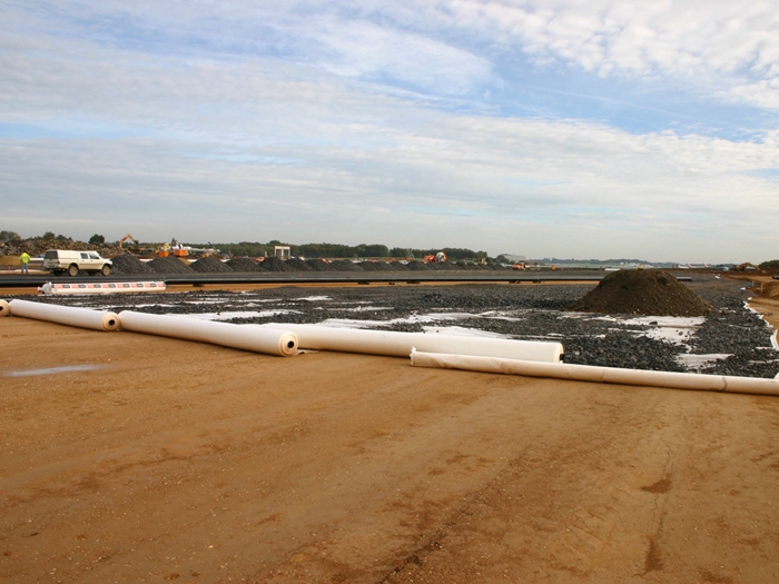 HDPE土工膜在縱向和橫向上都具有很大的拉伸強度,適應于大面積永久性承載的地基,由高分子聚合物經擠出壓成薄板再沖規...